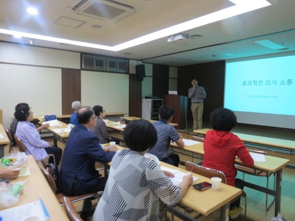 인천 계양구 정신재활시설 클럽하우스 해피투게더는 최근 구 보건교육실에서 정신건강의학과 전문의 이병조 원장을 초빙해 정신장애인 가족을 대상으로 가족교육을 실시했다. 사진은 이 원장이 강의하는 모습.(사진제공=계양구청)