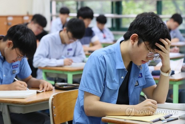 2018학년도 수능시험 9월 모의평가가 실시된 6일 오전 서울 종로구 경복고등학교에서 학생들이 복습을 하고 있다.
