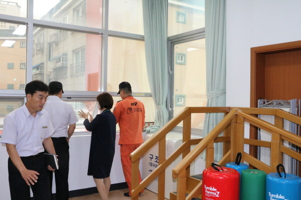 경기 군포소방서는 지난 5일 오후 당정동에 위치한 중증장애인 거주시설인 '양지의 집'에 방문해 화재예방대책 추진과 안전관리 강화를 위한 소방안전 컨설팅을 실시했다. 사진은 관계자들이 시설물을 점검하는 모습.
