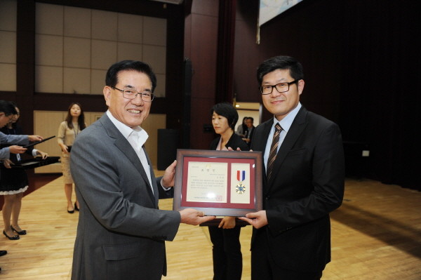 지난 7일 서울 동대문구청 다목적강당에서 사회복지 유공자, 자원봉사자 등 400여명이 참여한 ‘2017 동대문구 사회복지대회’가 개최됐다. 사진은 유덕열 구청장(왼쪽)이 표창 수상자와 기념촬영을 하고 있는 모습.(사진제공=동대문구청)