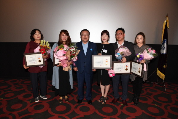 경기 양주시는 지난 7일 고읍동 메가박스 양주점에서 양주시사회복지협의회 주관으로 ‘제18회 사회복지의 날 기념식’을 개최했다. 사진은 행사가 끝난 후 이성호 시장(왼쪽 세 번째) 및 사회복지유공자들이 기념촬영을 하는 모습.(사진제공=양주시청)