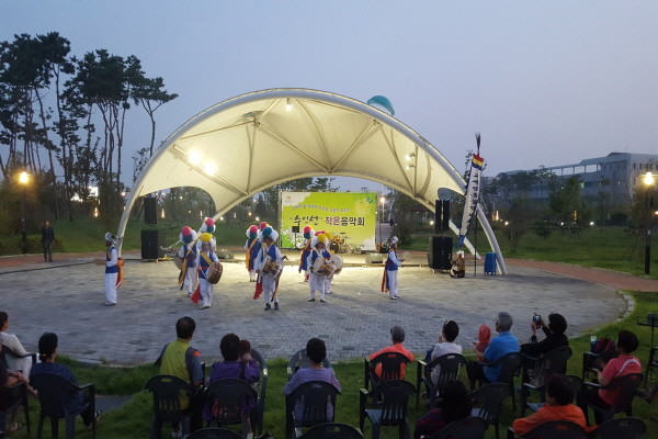 경기 수원시 권선구 평동은 지난 9일 고색동 중보들공원내 야외음악당에서 '제24회 수인선 작은음악회'를 개최했다. 사진은 사물놀이팀 '마루뜰'의 공연이 진행 중인 모습.(사진제공=권선구청)