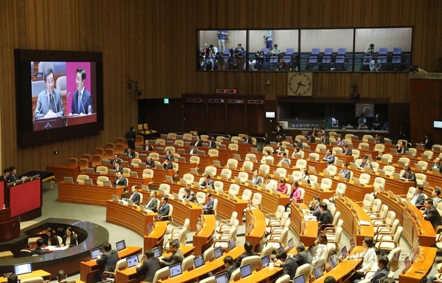 11일 서울 여의도 국회에서 열린 제354회 국회 제5차 본회의. 김이수 헌법재판소장 후보자 임명동의안이 부결된 뒤 의원들이 자리를 뜨자 빈자리가 눈에 띄고 있다.