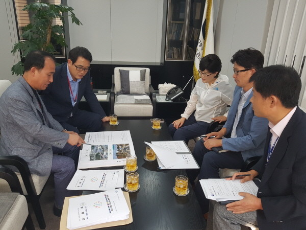 김선교 경기 양평군수는 최근 서울지방국토관리청을 방문해 김진숙 청장에게 지역 주민의 안전하고, 쾌적한 보행환경 조성을 위한 인도 설치를 요청했다. 사진은 김 군수(왼쪽에서 두 번째) 등이 국토관리청 관계자의 설명을 듣고 있는 모습.(사진제공=양평군청)