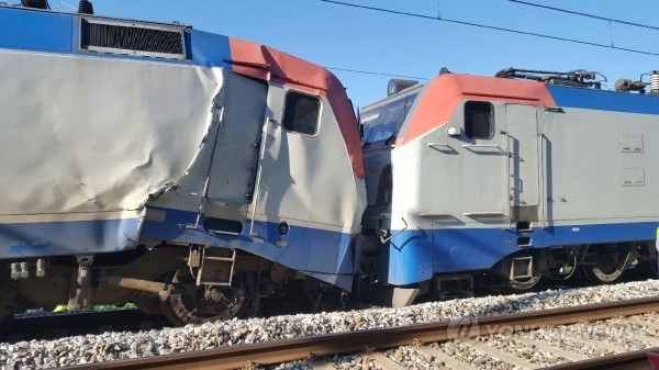 | ▲ 13일 오전 경기 양평군 도곡리 경의중앙선 양평역과 원덕역 사이 선로에서 시운전 중이던 열차 간 추돌사고가 발생해 40대 기관사가 숨지고 6명이 다쳤다.(사진제공=연합뉴스) | ||