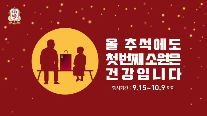이번 행사는 15일~10월9일 25일간 진행되며 정관장의 인기 품목으로 구성된 26종의 추석선물세트를 비롯해 홍삼톤골드, 화애락, 황진단(12환·30환) 등 인기제품 구매 시 10% 구매 혜택 제공과 더불어 다양한 행사를 준비했다.