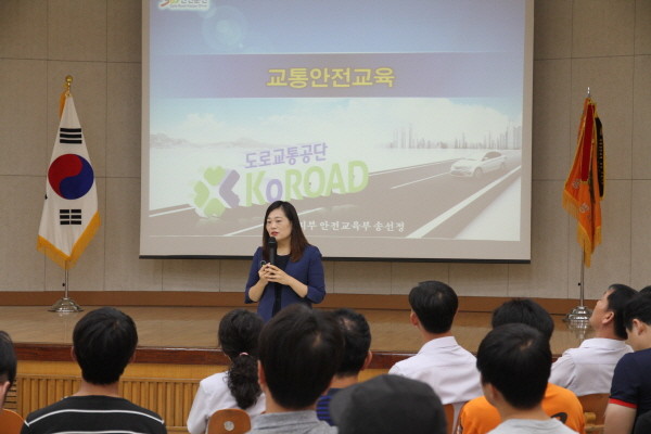 서울 동작소방서는 지난 13일 오전 소방서 3층 강당에서 '소방차 교통사고 예방 교육'을 실시했다. 사진은 도로교통공단 서울지부 송선정 강사가 안전 운행 요령 등에 대해 설명하는 모습.
