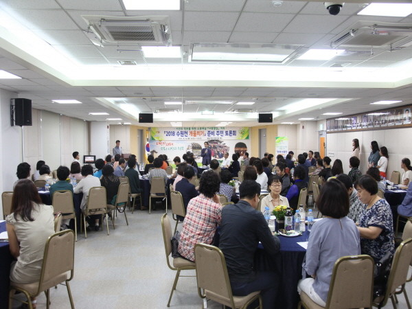 경기 수원시 팔달구는 최근 구민이 쉽게 행정에 참여할 수 있는 소통 채널을 마련하고자 기획된 '사통팔달' 토론회를 개최했다. 사진은 참여자들이 '2018년 개울치기 행사'의 성공적인 개최를 위해 다양한 의견을 나누는 모습.(사진제공=팔달구청)