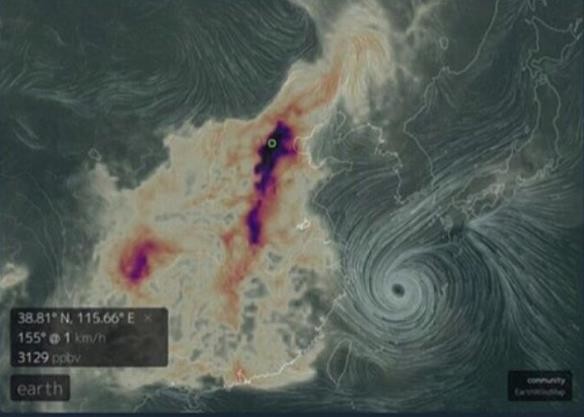 게시판에 게재된 사진은 태풍 탈림의 이동 경로가 담긴 상공 사진으로 알려진다. 현재 강력한 제18호 탈림이 일본 서쪽에 있어 중국발 미세먼지가 한국 방향인 서쪽으로 움직이지 못하고 중국 상공에 머무르고 있다.