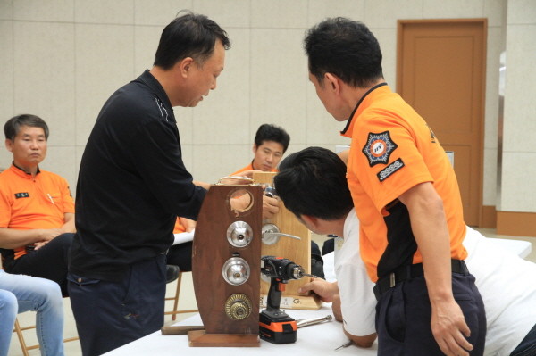 동작소방서는 지난 18일 오전 10시 3층 강당에서 현장대응단 및 각 119안전센터 직원의 신속한 현장 대응능력 향상을 위해 열쇠 전문가(열쇠직업학원) 강사를 초빙해 시건개방 실무기술 교육을 실시했다.(사진제공=동작소방서)
