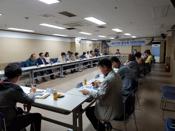 경기 용인시 처인구 동부동은 지난 19일 동주민센터 회의실에서 지역 시의원 및 주민들이 참석한 가운데 ‘지역현안 해결을 위한 간담회’를 개최하고, ‘2018년 중점 추진사업’과 지역현안에 대해 논의했다.(사진제공=용인시청)