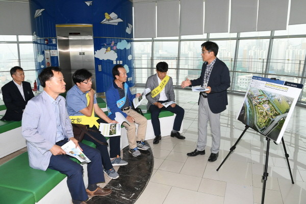 지난 19일 경기 오산시는 맑음터 공원에서 시민감사관을 대상으로 공유와 소통을 통한 청렴도 향상을 위한 ‘1일 포청천’ 체험을 실시했다. 사진은 '일일 포청천'으로 선정된 시민감사관이 하천공원과에서 업무에 대한 설명을 듣고 있는 모습.(사진제공=오산시청)