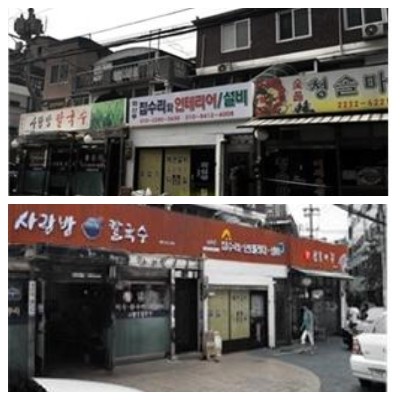 | ▲ (위)간판 정비전, (아래)간판 정비 후. | ||