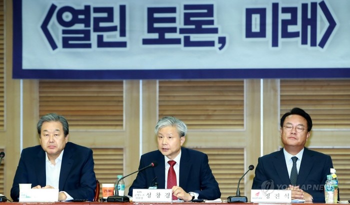 김 고문은 이날 서울 여의도 국회 의원회관에서 열린 '열린토론, 미래' 정례토론회에 참석해 "이념과 당파성을 강조하면서 자신과 맞지 않는 세력은 적폐로 몰고 국민 갈등과 분열을 부추기는 문재인정부는 남남갈등을 부추기는 적폐청산을 중단해야 한다"고 촉구했다.