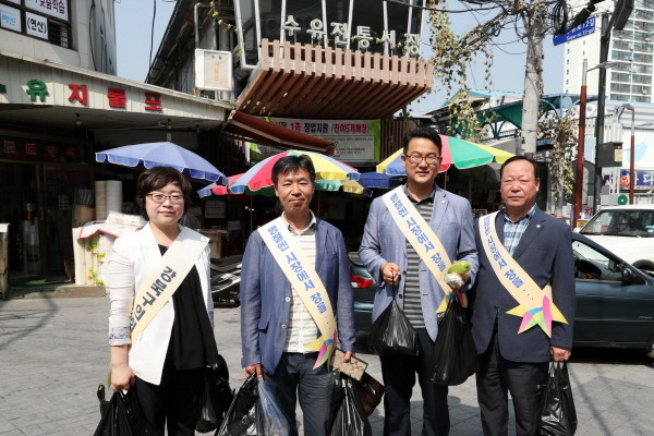 이번 캠페인은 추석 명절을 맞아 주민들이 제수용품 등을 시장에서 저렴하게 이용할 수 있도록 홍보해 시장 매출 향상 등에 기여하기 위해 이뤄졌다. 캠페인에는 박문수 의장, 한동진 부의장, 김도연 의원, 구본승 의원 등 구의원을 비롯해 의회사무국 직원 10여명이 함께했다.