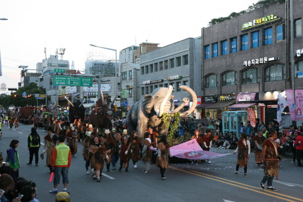 천호공원에서 서울 암사동 유적까지 약 1.8km에 이르는 구간에서 진행되는 거리퍼레이드는 매머드 가족, 맘모스, 공룡, 버팔로 등 대형조형물과 18개 동 퍼레이드단, 과거와 현재, 미래를 표현하는 300인의 퍼레이드단이 어디에서도 볼 수 없는 독특한 퍼포먼스로 볼거리를 제공할 예정이다.