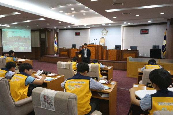 이번 공무원 직업체험은 중학교 1학년의 자유학기제 전면 시행에 따라 공공기관을 개방해 ‘공무원 직업체험’ 기회를 제공함으로써 진로·직업에 대한 올바른 이해와 긍정적인 직업관을 형성하고 의회의 기능과 역할을 알기 쉽게 설명해주기 위해 진행됐다.