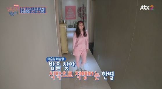 아침잠에 빠져 헤어 나오고 있지 못하던 박한별은 “나올래? 빨리”라는 엄마의 전화에 눈을 비비고 일어나 주방으로 향했다.