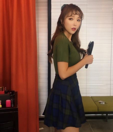 사진 속 홍진영은 빗을 들고 카메라를 바라보고 있다. 특히 홍진영의 남다른 볼륨감과 개미허리 몸매가 감탄을 자아낸다.