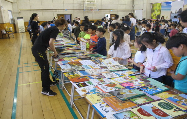 경기 부천시 상동초등학교는 최근 책사랑 어머니회 주관으로 도서바자회를 개최했다. 이번 바자회에서는 어린이들과 학부모의 적극적인 지원으로 가정에서 사용하지 않는 다양한 종류의 책을 기증받아 저렴한 가격에 재판매했다. 사진은 어린이들이 책을 고르는 모습.(사진제공=부천교육지원청)