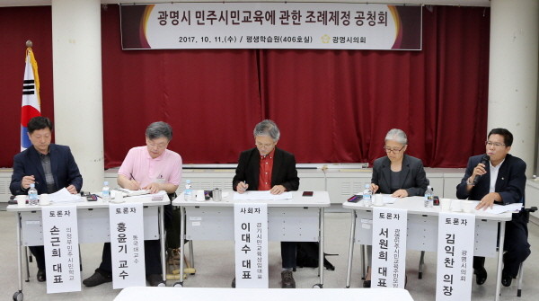 시의회에 따르면 시민과 전문가 등이 참석한 가운데 광명시평생학습원에서 민주시민교육에 관한 조례 제정을 위해 다양한 의견을 수렴하는 공청회를 진행했다.
