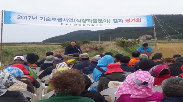 지난 12일 인천 옹진군이 덕적면 서포리에서 농업인 50명이 참석한 가운데 기술보급사업 식량작물분야 결과 평가회를 열고 새로운 벼농사(포트육묘) 재배 시범사업 등 2017년 한해 동안 농업기술센터에서 추진한 식량작물분야 사업을 종합적으로 평가했다.(사진제공=옹진군청)