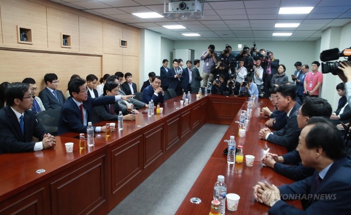 이런 가운데 보수재편으로 바른정당 내부가 정리되면 정치권 협치 틀이 이른바 개혁블록 형식으로 가닥을 잡게 될 수 있다는 전망과 함께 민주당과 국민의당 협치 가능성에도 관심이 쏠리는 분위기다.