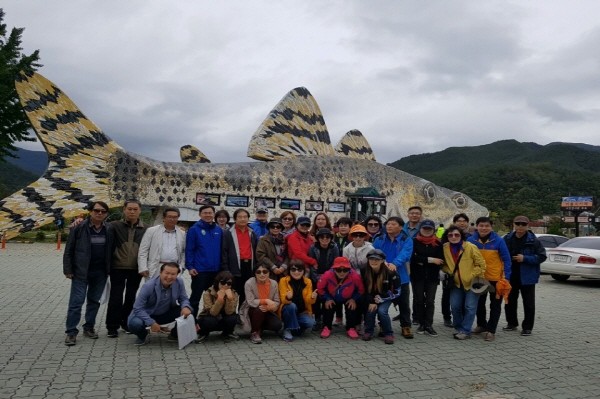 경기 김포시 장기동 통장단협의회가 최근 야외 반상회를 겸해 강원도 정선 일대로 ‘2017년 하반기 선진지 견학’을 다녀왔다. 사진은 참여자들이 기념촬영을 하는 모습.(사진제공=김포시청)