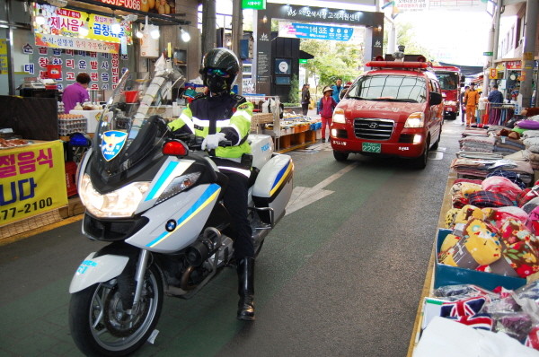 경기 오산소방서는 지난 16일 ‘10월 중 전국단위 유관기관 합동 소방차 길터주기 국민 참여훈련’의 일환으로 궐동지하차도~오산대교~운동장사거리~운천중학교~중앙도서관~시청~오색시장의 20km 구간에서 훈련을 진행했다.(사진제공=오산소방서)