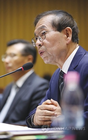 박원순 서울시장이 17일 오전 서울시청에서 열린 국회 행정안전위원회 국정감사에서 의원 질의에 답변하고 있다.