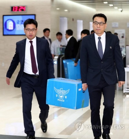 | ▲ 자택공사 비리 의혹을 수사하는 경찰이 삼성물산에 대해 압수수색을 실시한 18일 오후 경기도 성남시 분당구 삼성물산 건설부문 본사에서 경찰청 특수수사과 관계자들이 압수품을 들고 차량으로 향하고 있다.(사진제공=연합뉴스) | ||