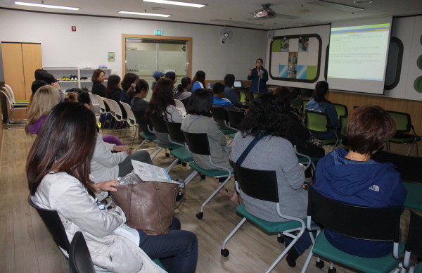 인천 연수구는 지난 17~19일 드림스타트 아동의 양육자 120여명을 대상으로 부모교육을 실시했다. 사진은 해오름심리발달센터장이 미술치료를 통해 나타난 아동의 심리상태와 부모가 도움을 줄 수 있는 방법에 대해 강의하는 모습.(사진제공=연수구청)