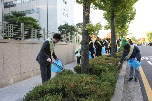 경기 수원시 팔달구는 지난 19일 오전 구 환경관리원 75명 전원이 참여한 가운데 일제 합동청소를 실시했다. 사진은 청소 참여자들이 쓰레기를 수거하고 있는 모습.(사진제공=팔달구청)