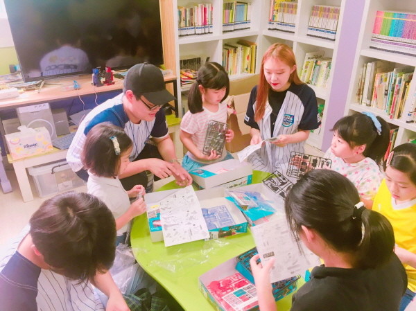 | ▲ 대전에서 대학생들이 아동센터를 방문해 어린이들과 함께 과학키트 만들기를 하고 있다. | ||