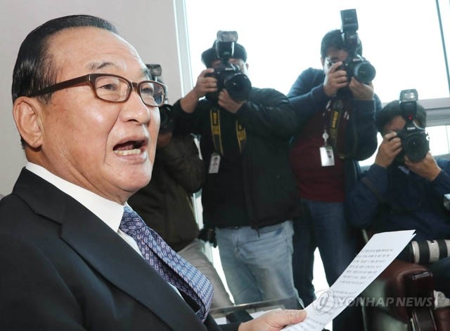 자유한국당 서청원 의원이 22일 오전 국회 의원회관에서 기자간담회를 열고 “당과 나라를 위해 홍준표 대표 체제는 종식되어야 한다”라고 주장하고 있다.