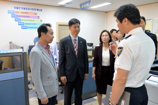 감사장 수여식 후 의원들은 경찰서 내 112 상황실에서 비상출동상황 시연을 관람하고 각 부서를 순회하며 지역치안 확보를 위해 수고하는 경찰관들을 격려했다.