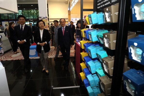 서울 강남구 압구정동 관광정보센터에서 최근 강남을 방문하는 외국인 관광객에게 의료관광, K-POP 등 다양한 한류문화 체험이 가능하도록 한 ‘한류체험관 개관식’이 진행됐다. 사진은 신연희 구청장(가운데)가 관계자들과 함께 한류체험관을 둘러보고 있는 모습.(사진제공=강남구청)