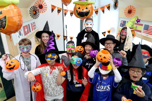 서울 성동글로벌체험센터가 10월 한 달간 '원어민 선생님과 함께하는 할로윈 이벤트'를 진행하고 있다. 사진은 지난 25일 금호글로벌체험센터에 열린 할로윈 이벤트에 참여한 원어민 선생님과 어린이들의 모습.(사진제공=성동구청)