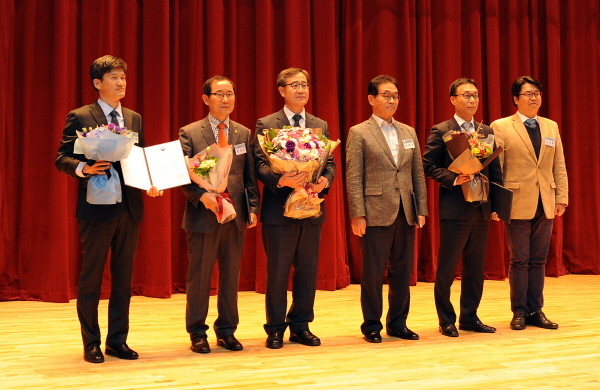 26일 서울 동대문구 ‘선농단 역사문화공원’이 정부세종청사에서 열린 ‘제11회 대한민국 공공건축상 시상식’에서 우수상을 수상했다. 사진은 시상식에서 수상 후 기념촬영을 하고 있는 고현명 행정국장(왼쪽에서 세 번째)의 모습.(사진제공=동대문구청)