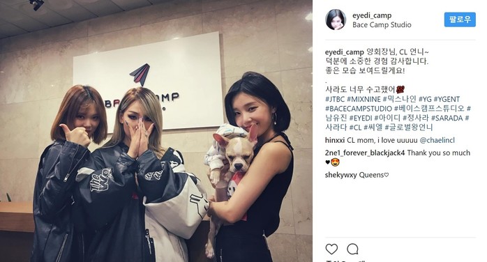29일 아이디는 자신의 인스타그램을 통해 씨엘(CL)과의 인증샷을 공개했다. 아이디는 "#JTBC #MIXNINE #믹스나인 #YG #YGENT #BACECAMPSTUDIO #베이스캠프스튜디오 #남유진 #EYEDI #아이디 #정사라 #SARADA #사라다 #CL #씨엘 #글로벌왕언니"라는 글을 덧붙였다.