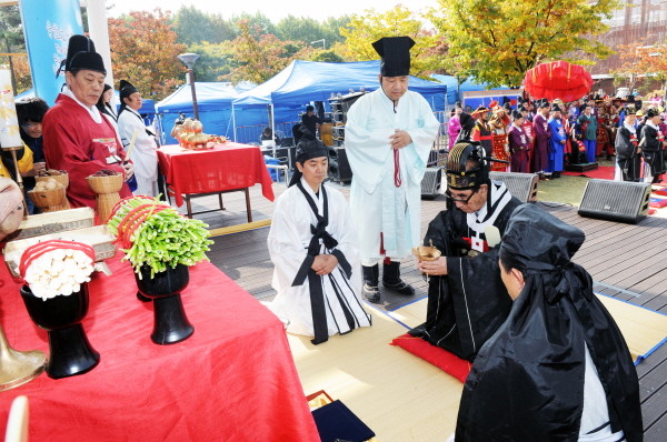 지난 28~29일 서울 동대문구 용두근린공원에서 비를 염원하고 풍농을 기원하는 기우제의 전통성을 살린 ‘제27회 청룡문화제’가 열렸다. 사진은 행사 참가자들이 국왕이 친히 폐백해 제사를 올리는 동방청룡제향식을 진행하고 있는 모습.(사진제공=동대문구청)