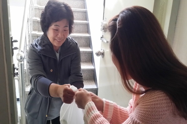 경기 동두천시 불현동지역사회보장협의체는 지난 27일 다문화·한부모가정 아동 21명에게 '행복한 한끼'를 제공했다. 사진은 협의체 관계자가 직접 만든 샌드위치를 전달하는 모습.(사진제공=동두천시청)