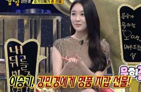 당시 방송에서 강민경은 "이승기 노래 '처음처럼 그때처럼'이라는 노래의 피처링을 도와준 적이 있다"고 말했다. 이어 그는 "녹음 끝나고 나왔는데 이승기 매니저가 선물을 대신 전해주더라"라며 해당 선물이 명품 지갑이었다고 밝혔다.