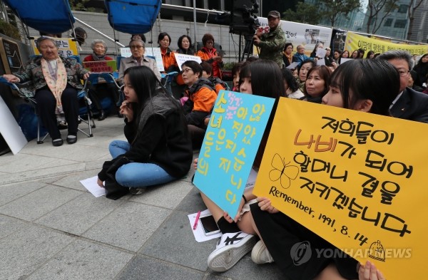 한편 이날 위안부 피해자 할머니 한 명이 별세함에 따라 생존한 위안부 피해자 할머니는 총 34명으로 줄어들었다.