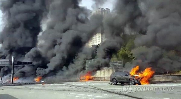 또 화물차 2대, 승용차 8대로 불이 옮겨 붙었다고 소방당국은 설명했다.