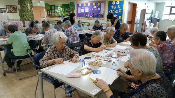 경기 안산시 상록수보건소가 지난 1일 경증 치매노인들을 대상으로 진행한 인지재활 프로그램 ‘기억 청춘학교’ 수료식을 개최했다. 사진은 교육에 참가한 노인들이 미술 프로그램을 진행하고 있는 모습.(사진제공=안산시청)