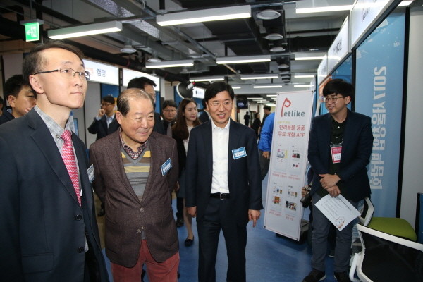 지난 2일 오전 박홍섭 마포구청장(왼쪽 두번째)이 서울창업허브에서 열린 '2017 서울창업박람회 개막식'에 참석해 행사장을 둘러보고 있다.(사진제공=마포구청)