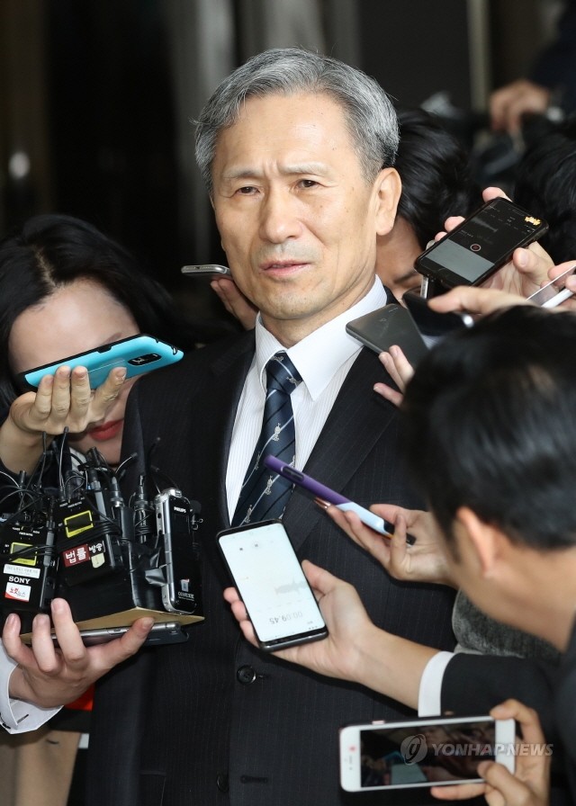 군 사이버사령부 댓글 공작에 관여한 의혹을 받고있는 김관진 전 국방부 장관이 7일 조사를 받기 위해 피의자 신분으로 서울 서초구 중앙지검에 출석해 취재진의 질문에 답하고 있다.