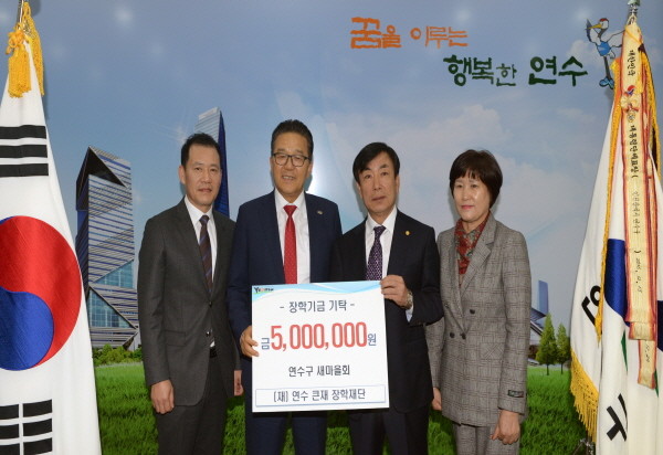 인천시 연수구 새마을회, 8일 연수큰재장학재단에 장학금 기탁