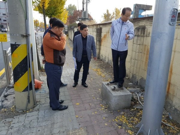 경기 동두천시 고재학 부시장은 지난 6일 교육환경개선 사업과 관련, 동두천역에서 동양대 정문까지 환경 점검을 실시했다. 사진은 고 부시장(오른쪽)이 관계자들과 함께 노후 가로등과 보도블록을 살펴보는 모습.(사진제공=동두천시청)